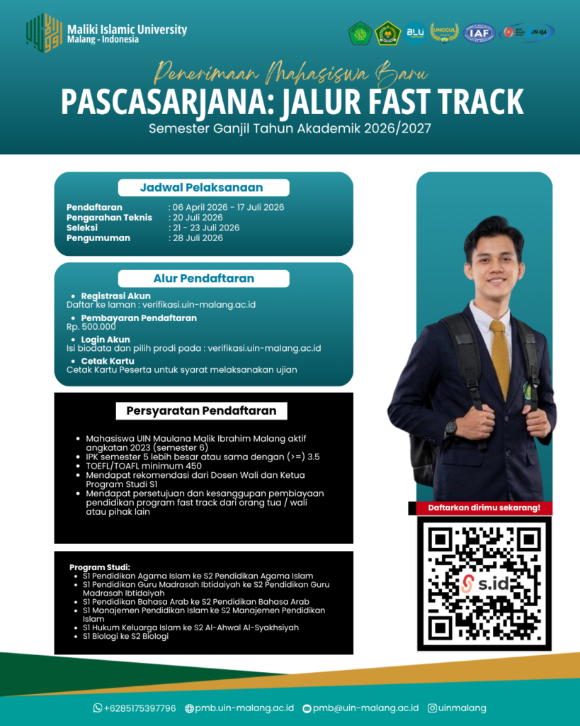 Info selengkapnya kunjungi laman: https://pmb.uin-malang.ac.id/mandiri-pascasarjana/