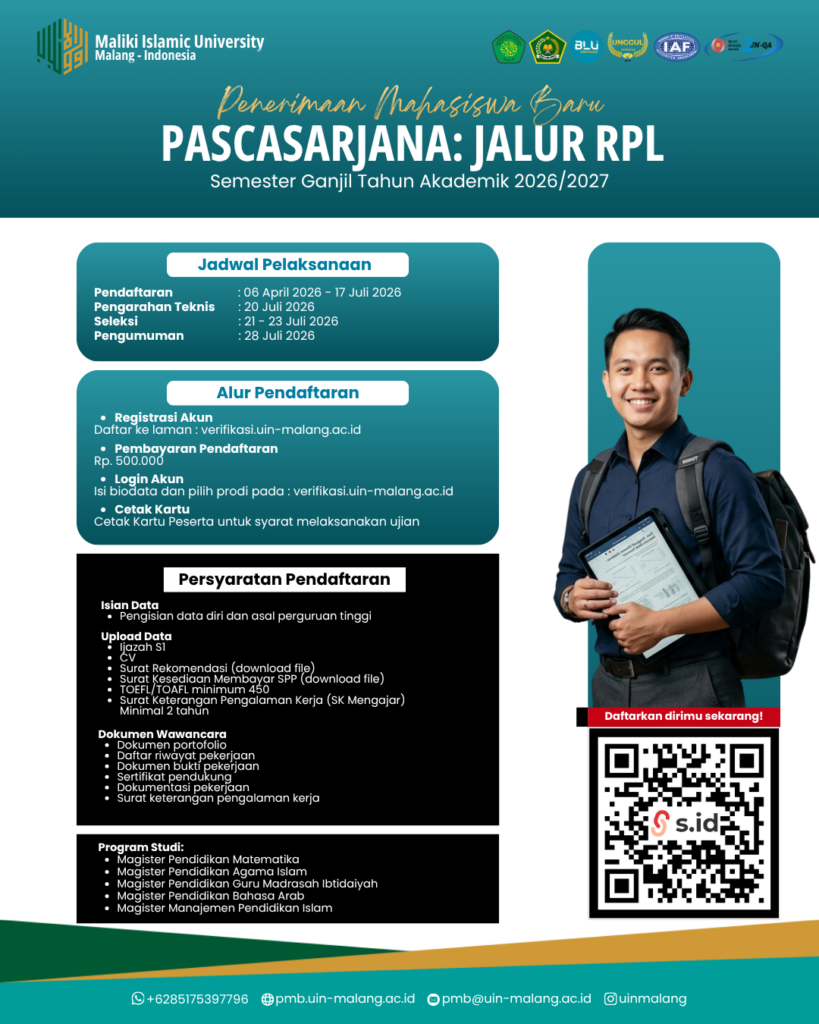 Info selengkapnya kunjungi laman: https://pmb.uin-malang.ac.id/mandiri-pascasarjana/